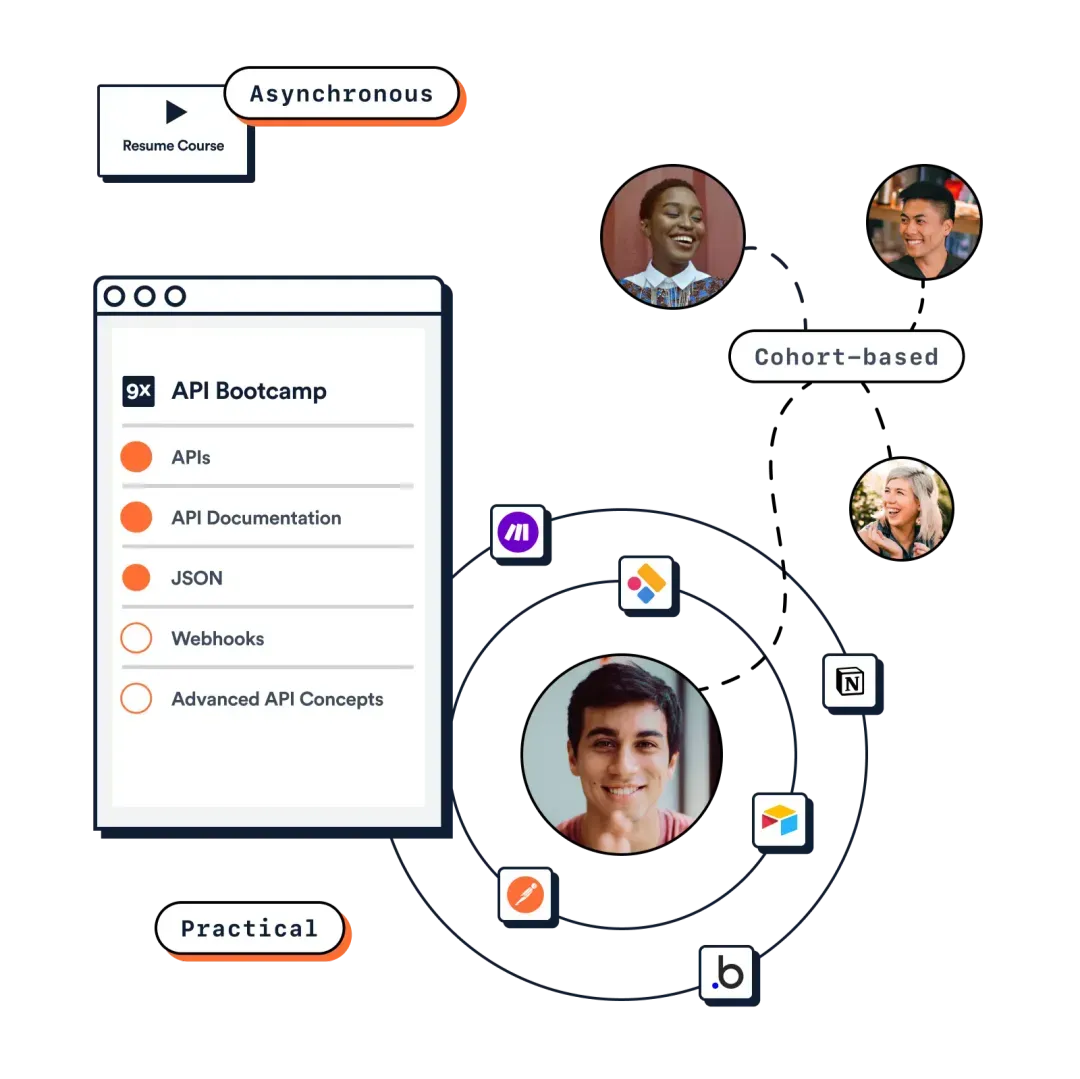 Our Bootcamp is run by automation experts from 9x, a no-code automation agency specialized in internal process automation. We will help you understand how you to leverage the power of APIs in your day-to-day work.